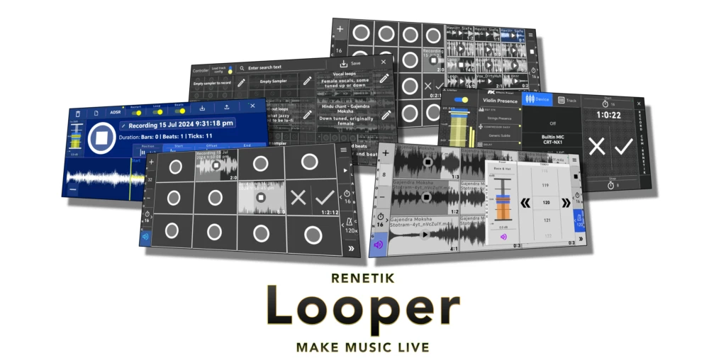 Record loops or import audio, overdub, edit with effects to compose and perform music live.