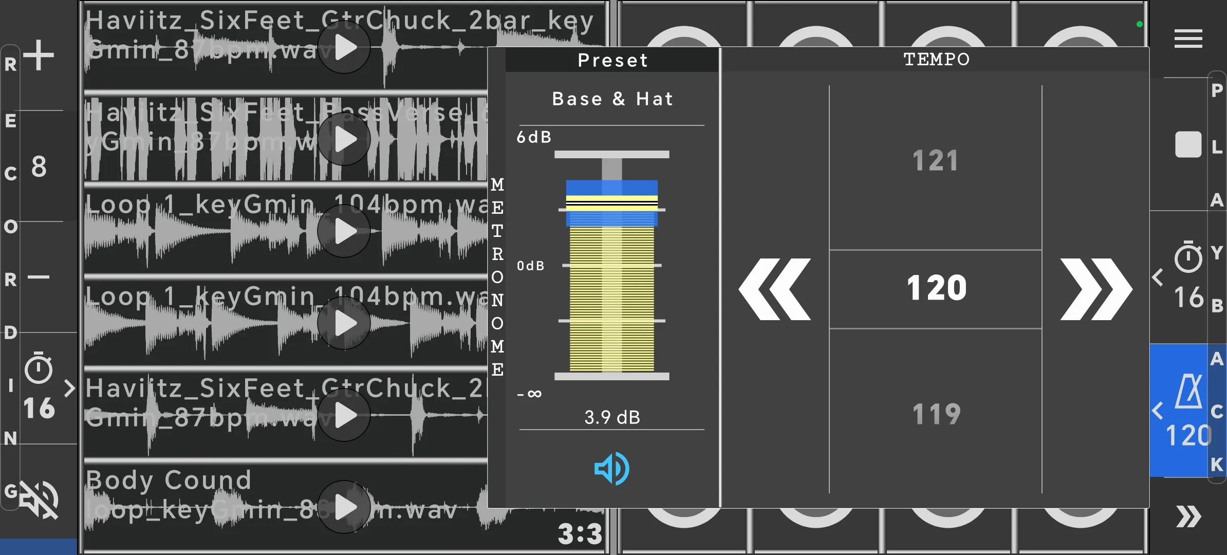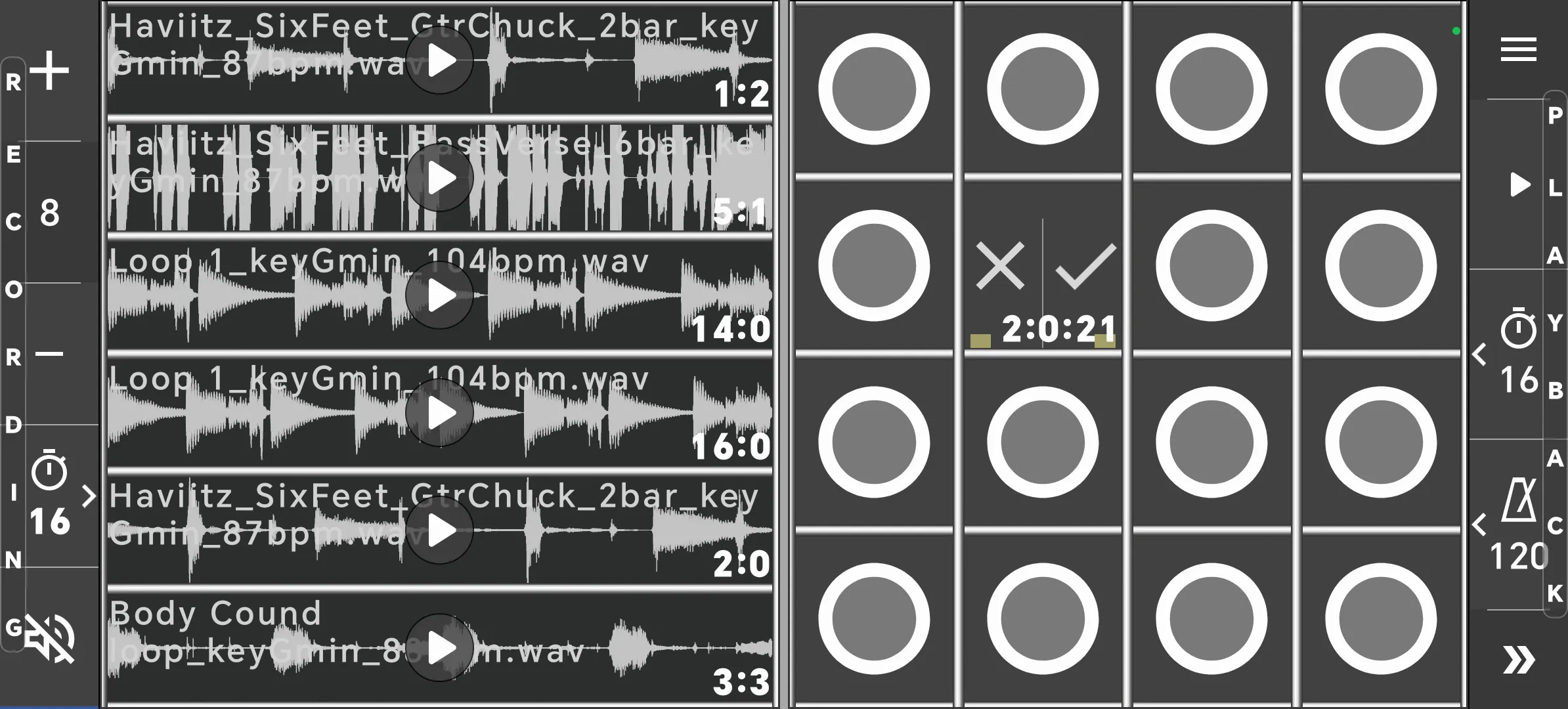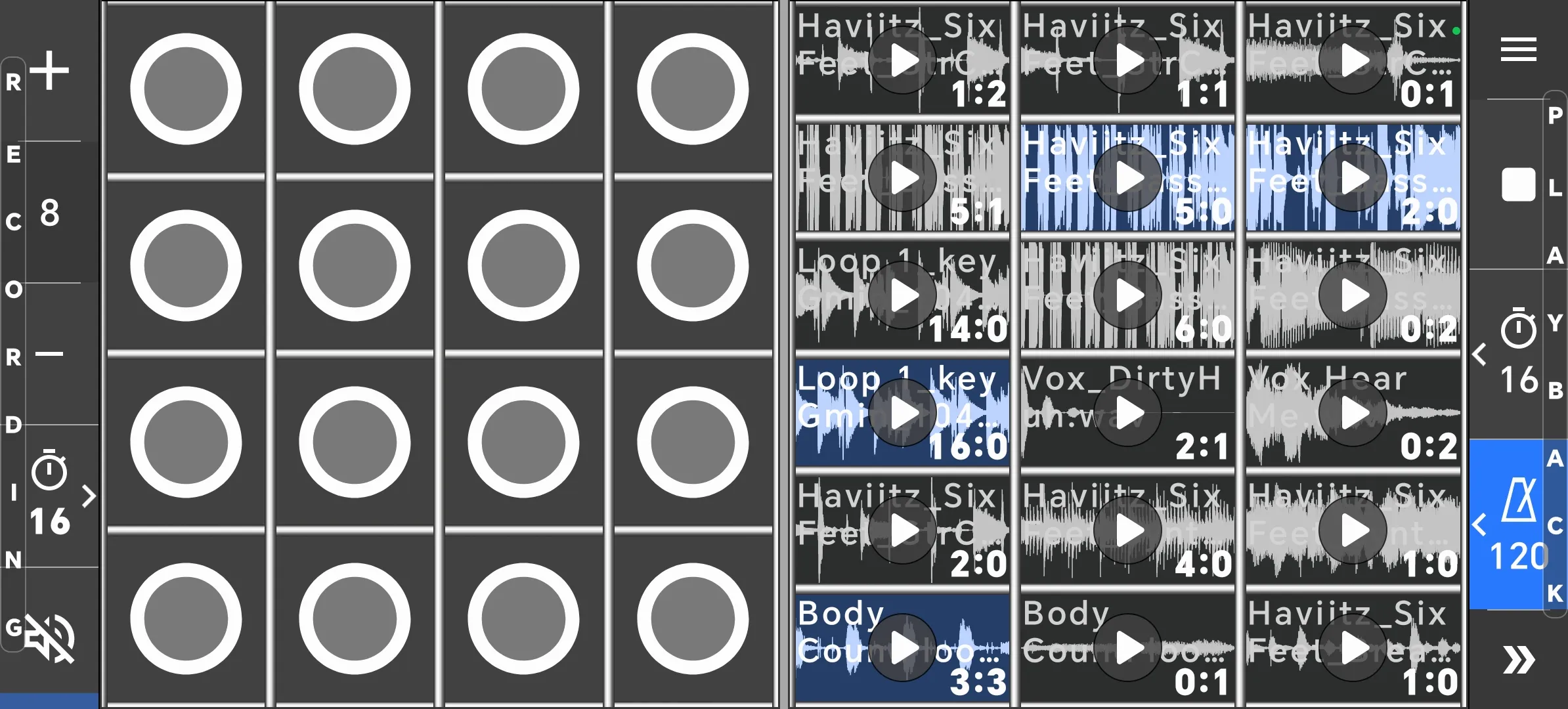 Use configurable grid of samplers to play, record and compose music